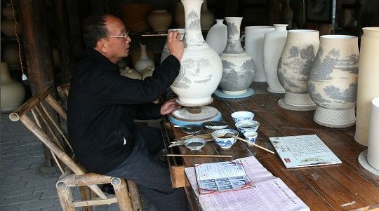 原始社會(huì)制陶初期,人們是用普通的濕泥涂抹在用藤編織的器物上或捏搓成泥條盤筑成型,將器型內(nèi)外拍打光潔平整。人們操作時(shí)必須圍著坯件轉(zhuǎn)動(dòng),這樣器型不易規(guī)整。為了減輕勞動(dòng)強(qiáng)度和提高質(zhì)量,人們便用圓木板做成轉(zhuǎn)盤,坐在固定位置上轉(zhuǎn)動(dòng)木盤就可以操作,這比圍著坯轉(zhuǎn)可謂一大進(jìn)步。