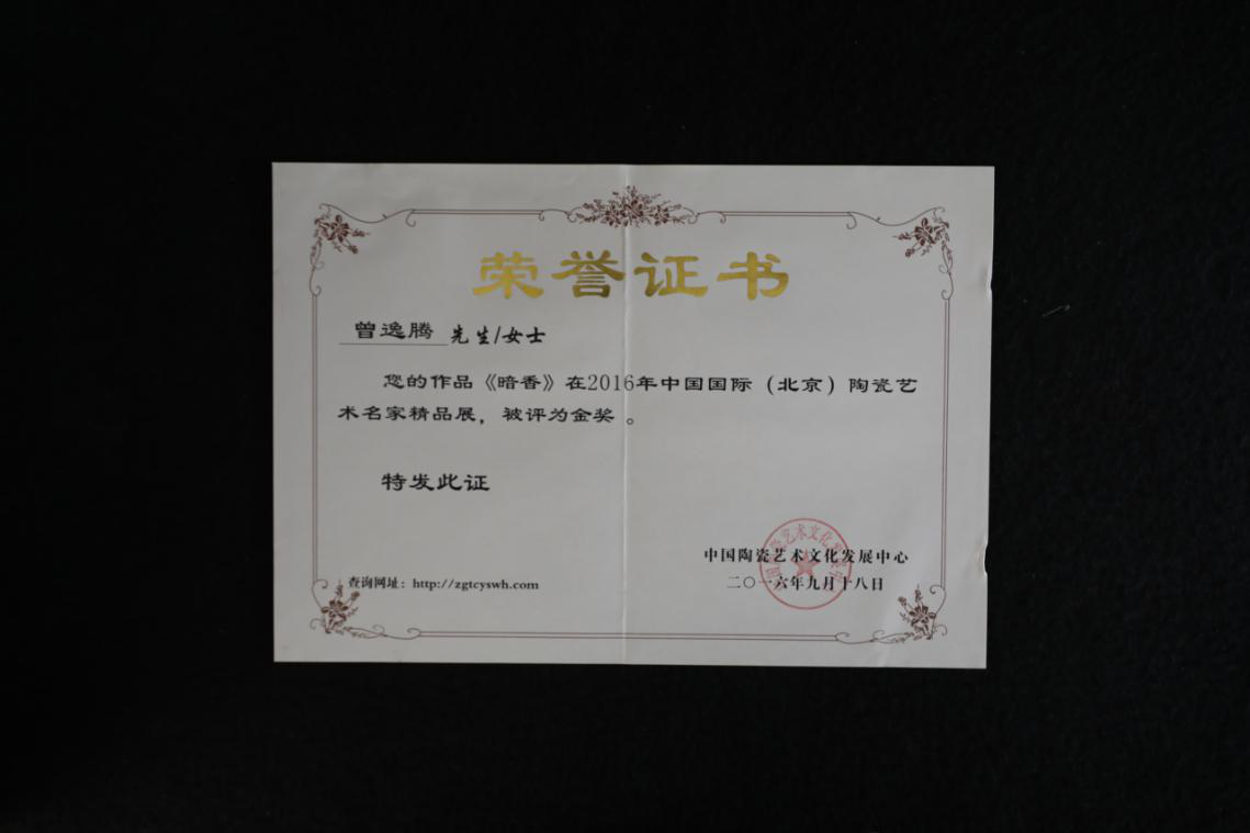 2016年《暗香》獲中國國際(北京)陶瓷藝術(shù)名家精品展金獎。