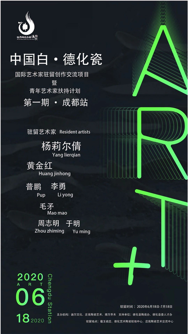 由迦爾文化、莊苑陶瓷藝術(shù)交流中心、蘊(yùn)玉瓷莊、南方喬木主辦的“·德化瓷ART+國際藝術(shù)家駐留創(chuàng)作交流項(xiàng)目暨青年藝術(shù)家扶持計(jì)劃第1期”于2020年6月18日正式開啟,來自成都區(qū)域的6位藝術(shù)家:楊莉爾倩、黃金紅、普鵬、李勇、毛矛、周志明參與了此期的駐留。