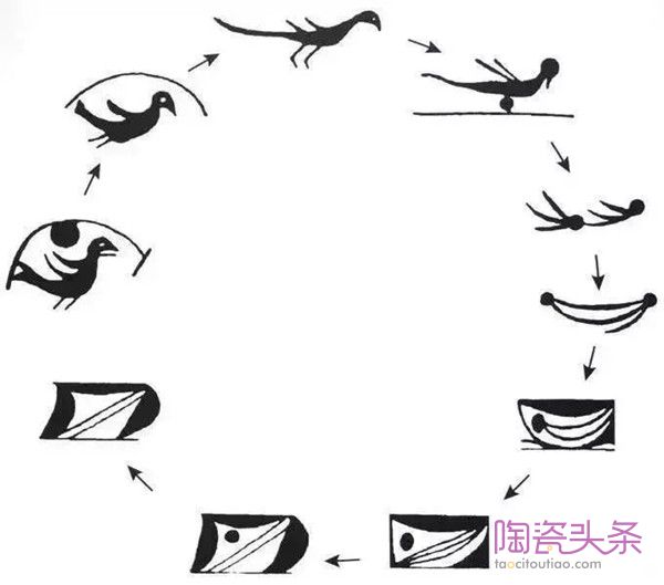 而在它的底部,還有一層大汶口文化彩陶的回紋。正面,有兩個(gè)馬家窯文化彩陶抽象表述,這些豐富多彩的彩陶藝術(shù)品,猶如閃耀的繁星,放射出奪目的光彩,充分顯示出古代藝術(shù)大師卓越的創(chuàng)作才能。