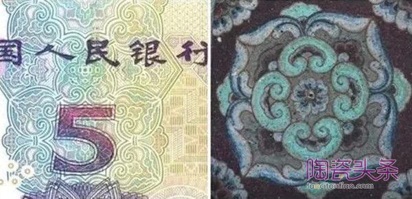 10元紙幣背面的風(fēng)景,選用著名的長(zhǎng)江三峽,氣勢(shì)磅礴。而在正面,很容易辨認(rèn)出兩組在瓷器上經(jīng)常出現(xiàn)的纏枝蓮紋。一組在“中國人民銀行”的下方,一組則作為毛澤東像的背景。
