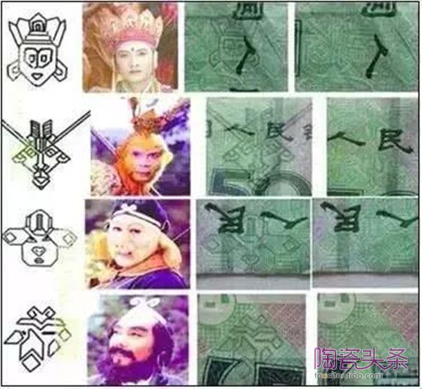 到了50元,給人的感覺就復(fù)雜很多了,網(wǎng)友們?cè)?jīng)發(fā)現(xiàn)50元人民幣上面的紋飾,看上去像是四個(gè)人,于是自然而然就聯(lián)想到了一個(gè)由四個(gè)人做主角的傳統(tǒng)文化作品——《西游記》。