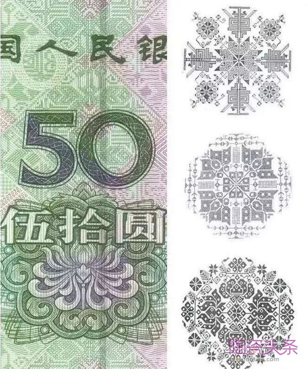 其實(shí),50元上面的紋飾是羌族的刺繡圖案。