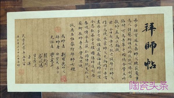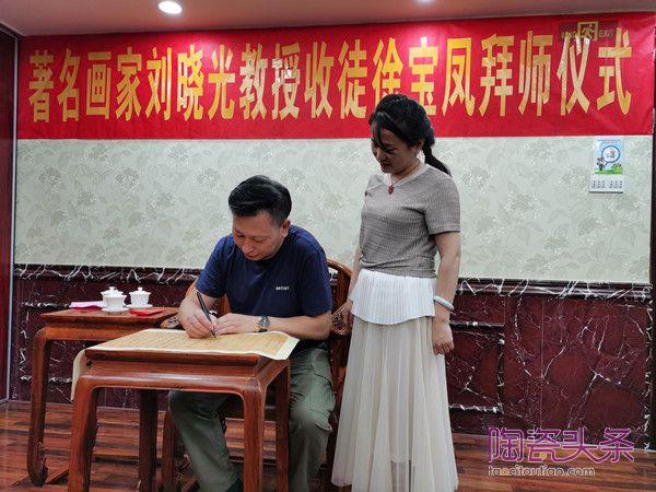 5月1日,福建省德化博及漁人陶瓷有限公司徐寶鳳拜中國(guó)美術(shù)家協(xié)會(huì)會(huì)員、清華大學(xué)美術(shù)學(xué)院高研班導(dǎo)師、中國(guó)現(xiàn)代美術(shù)研究院油畫院院長(zhǎng)、吉林省油畫學(xué)會(huì)副主席、吉林大學(xué)美術(shù)學(xué)院客座教授劉曉光為師的拜師儀式隆重舉行。