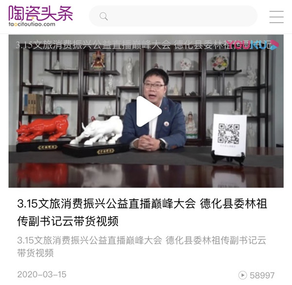“云帶貨”賦能“中國白·德化瓷”,助力德化破解當(dāng)前線下營銷困境