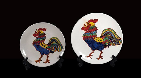 陶瓷釉上潑彩山水是先將陶瓷特種油料顏料在小碟中調(diào)至所需要的色相及濃度,然后潑灑在畫面上,利用其自然流淌滲化的性能,形成畫面的大體結(jié)構(gòu),再利用色彩滲化的形跡和肌理效果,用筆整理、補充成為完整的作品。因此這種畫法具有一定的偶然因素,往往需要根據(jù)色彩落瓷后的效果靈活地調(diào)整畫面。但潑彩作為一種藝術(shù)創(chuàng)作的手段,并不是盲目地在瓷器上亂潑一氣。而是作者必須對畫面的藝術(shù)形象有所構(gòu)思,什么部位潑什么色彩,怎樣潑,需要達(dá)到什么效果,以后整理成什么形象,心中都要有所準(zhǔn)備。另外,色彩潑到瓷器上,也不是毫無節(jié)制地任其流淌滲化,而必須對其加以引導(dǎo)和控制,按章法處理出大效果后,再處理局部墨色,不需要滲化的部位,可用另一張紙吸去油料,需要保留的開頭可用電吹風(fēng)吹干固定,需要形成不同的色差。如果感覺某些局部一次潑的色彩不夠濃烈,或需要加強色彩變化,還可以潑第二次、第三次,但必須掌握技巧,不能造成畫面斑駁狼籍或潰漫無度,要注意色彩明暗深淺的差別變化,做到自然引導(dǎo)、補充。
