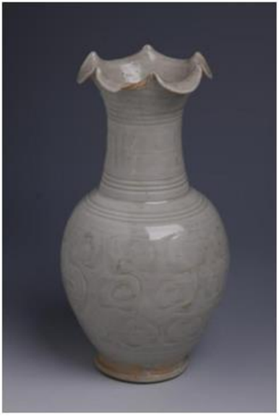宋 青白釉劃花荷口瓶 (德化縣陶瓷博物館供圖)