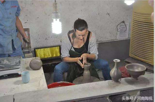 瑪麗亞·韋丁女士在體驗(yàn)拉坯工藝