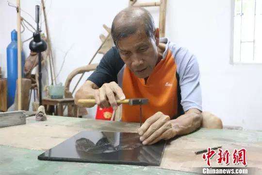“叮叮咚咚……”在清脆悅耳的聲響中,廣西工藝美術學校66歲的教師朱明德手握鐵錘,捶打著錐形刻,在瓷盤上“刺繡”。不一會兒的功夫,瓷盤上就勾畫出一副栩栩如生的人物輪廓。9月6日,朱明德通過示范刻瓷手法,給該校的學生傳承刻瓷技藝。