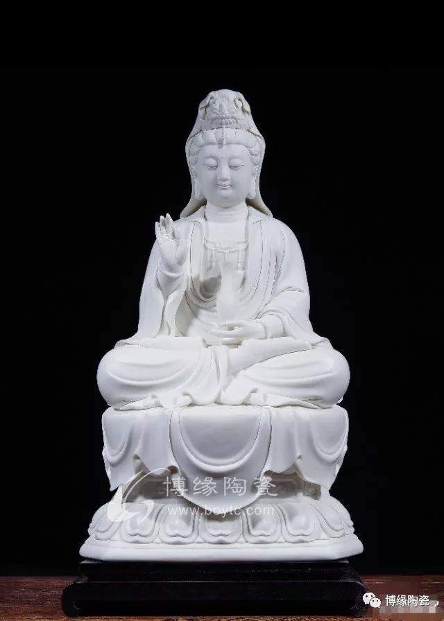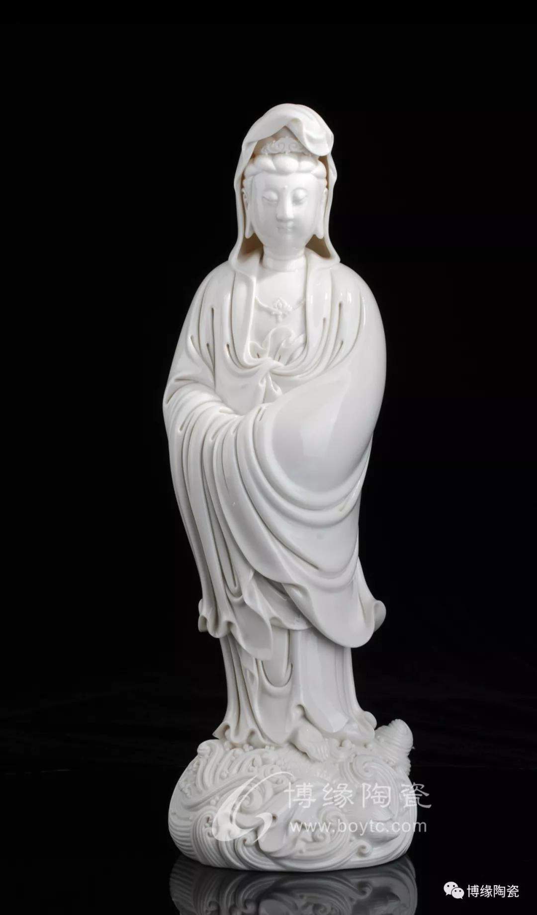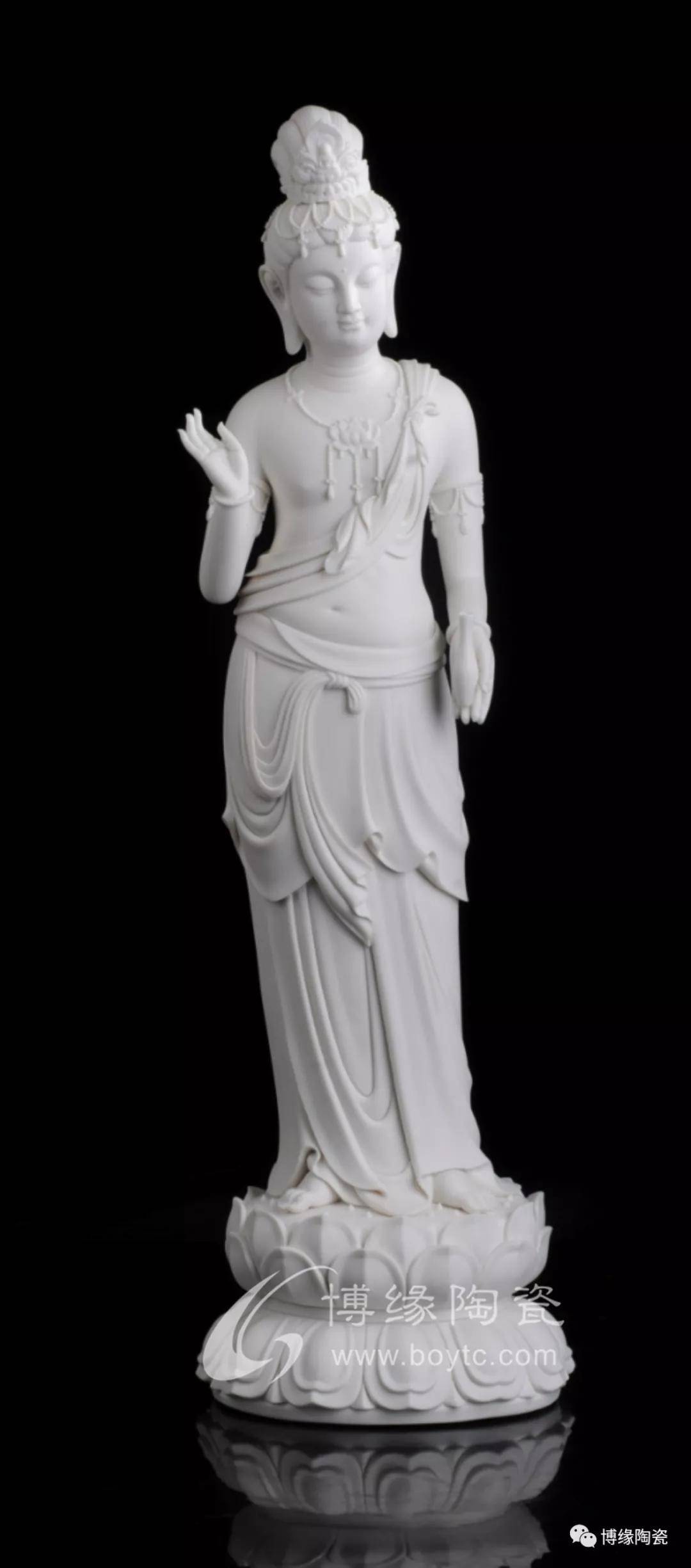 在流傳的德化窯瓷塑藝術(shù)作品中,以陶瓷為材質(zhì)雕塑的菩薩形象,面目慈祥、神態(tài)逼真,姿態(tài)神情各異,衣紋裝飾別致,規(guī)格大小不一,極大地豐富了中國陶瓷藝術(shù),產(chǎn)生了千姿百態(tài),各臻其美的藝術(shù)效果。