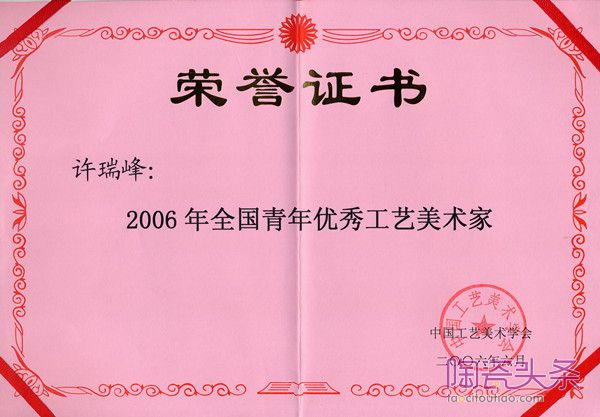 功夫不負(fù)有心人,經(jīng)過三十多年的專業(yè)實(shí)踐,許瑞峰作品先后七十多次獲得國家、省、部級嘉獎。并有二十六件作品被中國國家博物館、中南海紫光閣、國家珍寶館、中國美術(shù)館、中國工藝美術(shù)館、英國珍寶博物館、福建省博物館、福建省工藝美術(shù)珍品館、德化陶瓷博物館等海內(nèi)外多家文博單位收藏。