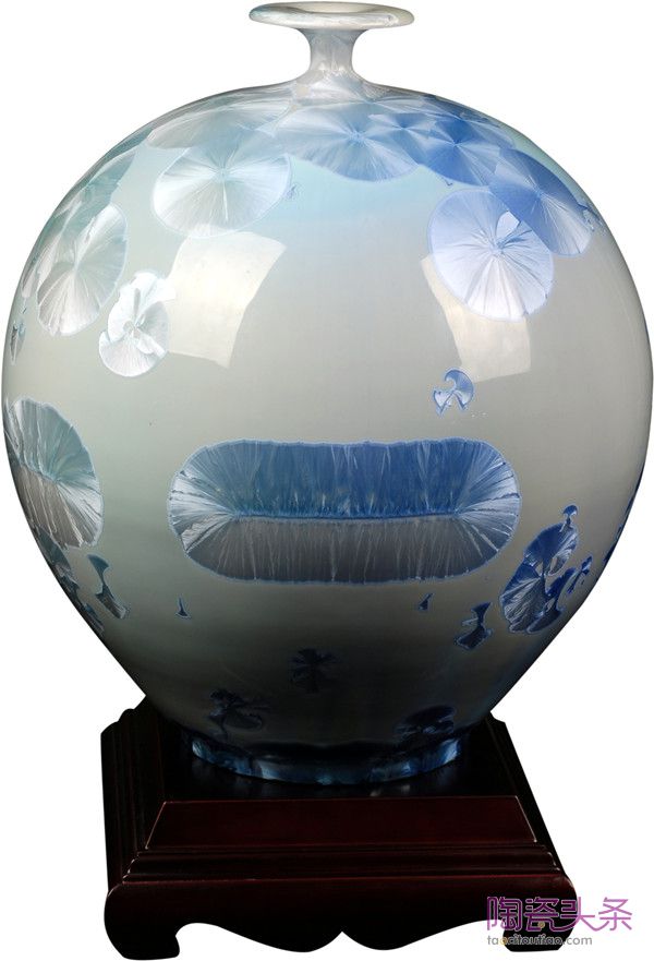 “寶石釉”是窯變釉中的璀璨明珠。這種釉在1350度高溫熔融後,經(jīng)緩慢冷卻,釉中的結(jié)晶性物質(zhì)處于過飽和狀態(tài),從而析出呈美麗花紋的晶體。結(jié)晶釉有高溫和低溫兩種,有單色和復(fù)色之分,晶花有細(xì)晶和粗晶兩種,“寶石釉”是屬于高溫、粗晶、復(fù)色結(jié)晶釉,堪稱窯變結(jié)晶釉中最名貴的品種。由于釉料的成分靠‘人巧’,而燒成氣氛則靠‘天工’故有“一為天工,二為人巧”之說。寶石釉‘入窯一色,出窯萬彩’件件孤品。作品《橄欖》于2006年榮獲中國手工藝精品博覽會-華茂杯金獎;《云瓶》于2004年榮獲上海民間藝術(shù)博覽會金獎;《多彩葫蘆》于2001年榮獲福建省首屆民間藝術(shù)家評選活動金獎;《圓肚小口瓶》于2002年榮獲第四屆中國(國家級)工藝美術(shù)大師精品博覽會金獎;《多彩大云瓶》于2002年榮獲第三屆福建省工藝美術(shù)精品爭艷杯大賽金獎?!?