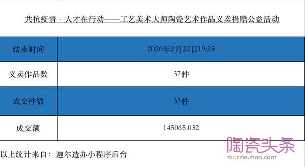 此次義賣37件陶瓷藝術(shù)品,共募得善款:145065.032元。部分作品競爭激烈,圍觀瀏覽超萬人次。