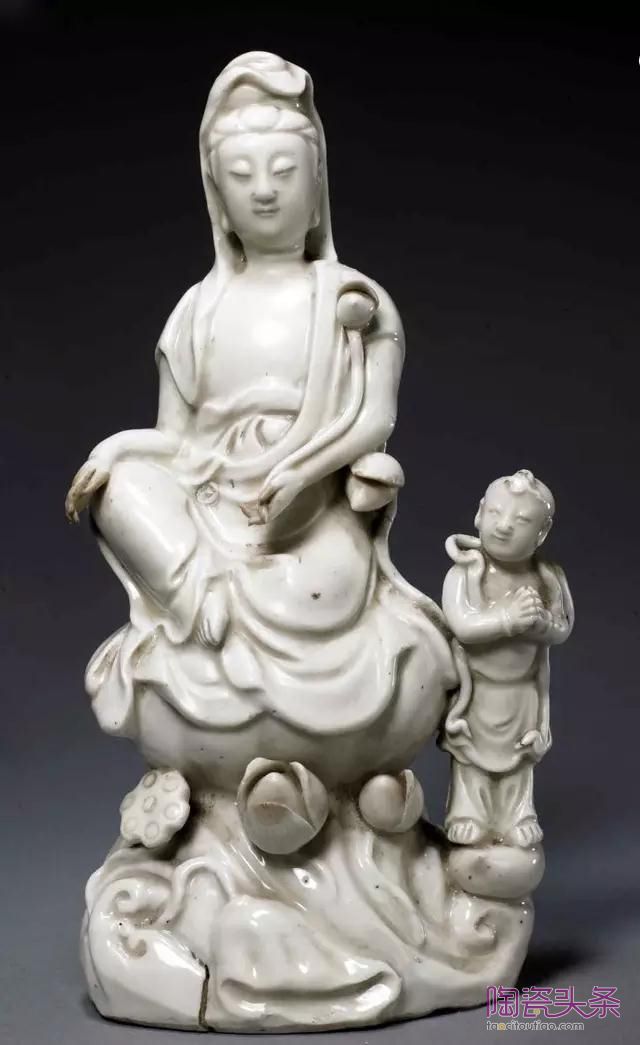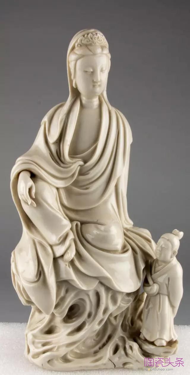 4、清代德化窯白釉瓷塑:童子拜觀音像