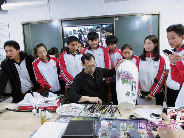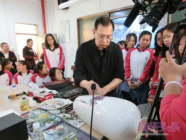 創(chuàng)作過(guò)程中,洪德清還時(shí)不時(shí)與現(xiàn)場(chǎng)的的學(xué)生分享瓷繪創(chuàng)作的心得和理念,耐心解答學(xué)生們的問(wèn)題。學(xué)生們也表現(xiàn)出格外的熱情,積極而認(rèn)真地投入到交流和學(xué)習(xí)中,使得現(xiàn)場(chǎng)氛圍活躍而愉快。