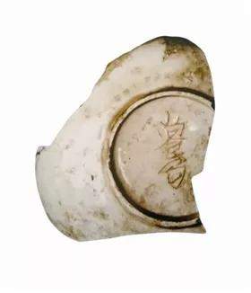 傳世及出土的宋代定窯瓷器中,有款識(shí)的是極少數(shù),如“尚食局”“尚藥局”“五王府”等,還有帶“官”“新官”等字樣的款,這些都是入窯燒制前刻劃在瓷胎底足上的?!吧惺尘帧笔莻魇赖乃未善魃陷^為多見的款識(shí),而且刻有這種字樣的多為大型瓷盤。這件白釉印花龍紋盤上的題款,在定窯瓷器中很有代表性,款識(shí)文字大多用行草,雖寫得不大規(guī)正美觀,卻表現(xiàn)得自然有力。