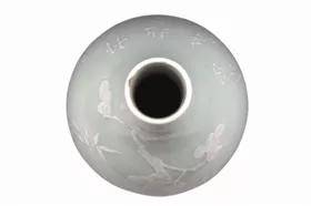 梅花開于百花凋零、萬物冬藏的寒冷季節(jié),與潔凈的白雪為伍,代表著無畏與脫俗,為大自然增添生機和美麗。竹子中通外直,代表正直和謙虛。清亮高節(jié),虛懷若谷是君子風(fēng)度。梅竹情操就是正直不阿、謙虛和藹、無畏超脫的高尚品質(zhì)。梅竹在一起要么表達(dá)青梅竹馬的意思,要么就是勵志、精神上的贊賞。清乾隆豆青加粉梅竹二友天球瓶為館藏二級文物,彌足珍貴。