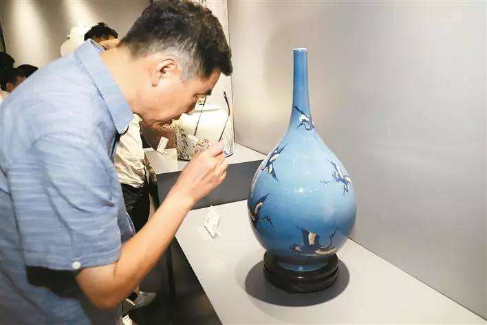 數百件景德鎮(zhèn)精品瓷器昨日亮相巡展現(xiàn)場。