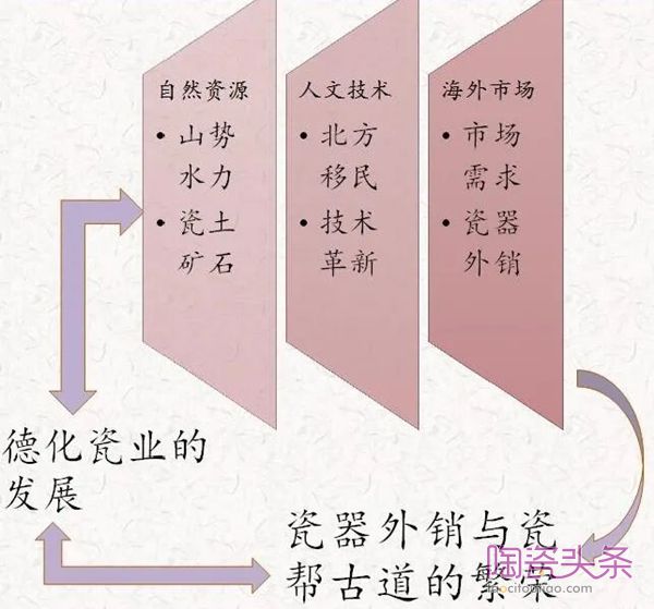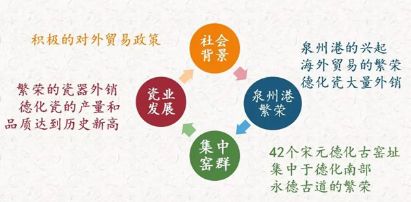 德化地區(qū)得天獨(dú)厚的自然地理?xiàng)l件和人文社會發(fā)展史促使德化制瓷手工業(yè)得以飛速發(fā)展。宋元時期起,瓷幫古道進(jìn)入繁榮與昌盛階段。