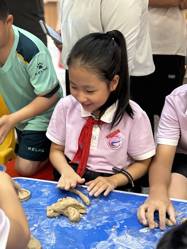 隨后,王大師親自示范了泥塑的基本手法,并以貼合小朋友們喜好的兔子造型為例,現(xiàn)場教授小朋友捏制小兔子,短短幾個(gè)步驟,小兔子已初見形態(tài)。在大師的指導(dǎo)下,小朋友們紛紛動手嘗試,體驗(yàn)了從一團(tuán)泥巴到一件泥塑的轉(zhuǎn)變過程。他們發(fā)揮自己的想象力,興致勃勃,有的捏制了小動物,有的塑造了卡通人物,還有的嘗試制作了杯子,形態(tài)各異、充滿童趣。每一件作品都凝聚了孩子們的創(chuàng)意和努力。