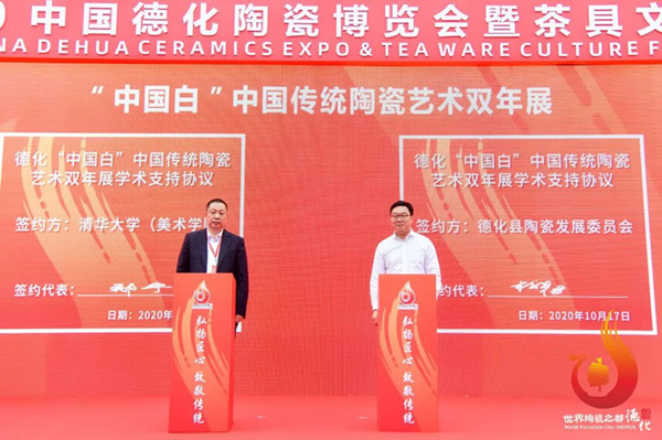 展會(huì)期間主會(huì)場(chǎng)舉辦了多場(chǎng)簽約、授牌儀式等專業(yè)活動(dòng),包括德化縣陶瓷發(fā)展委員會(huì)與清華大學(xué)美術(shù)學(xué)院簽訂“”中國(guó)傳統(tǒng)陶瓷藝術(shù)雙年展學(xué)術(shù)支持合作協(xié)議、中國(guó)茶葉流通協(xié)會(huì)授予中國(guó)茶具城“最具潛力中國(guó)茶具交易市場(chǎng)”授牌儀式、2020“何朝宗杯”中國(guó)(德化)陶瓷工業(yè)設(shè)計(jì)大賽首批戰(zhàn)略合作企業(yè)授權(quán)儀式、“云上一會(huì)一節(jié)” 平臺(tái)上線及系列專場(chǎng)商貿(mào)對(duì)接會(huì)。系列活動(dòng)對(duì)提升德化陶瓷產(chǎn)業(yè)產(chǎn)學(xué)研水平、加快大賽設(shè)計(jì)成果對(duì)接企業(yè)轉(zhuǎn)化落地、企業(yè)探索新營(yíng)銷渠道以及提升茶具專業(yè)市場(chǎng)品牌具有重要意義。
