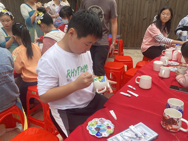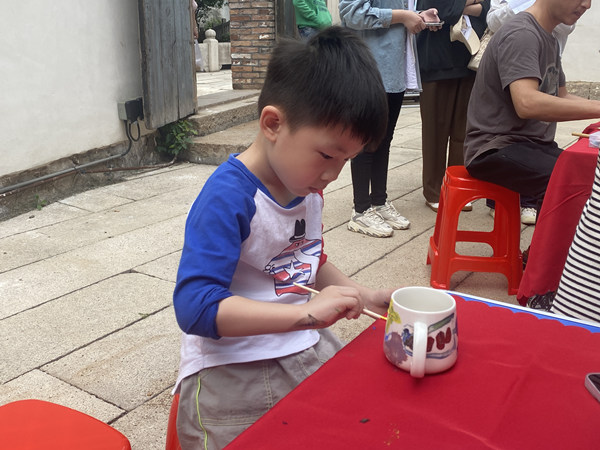 在瓷繪DIY體驗(yàn)活動(dòng)上,蘇輝煌老師鼓勵(lì)小朋友與家長大膽發(fā)揮想象,合力創(chuàng)作,他還不時(shí)與現(xiàn)場(chǎng)參與的小朋友互動(dòng),指導(dǎo)繪畫技法。大朋友小朋友們各顯神通,用一根小小畫筆,繪出五彩的陶藝世界。