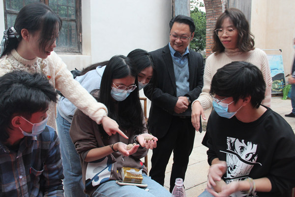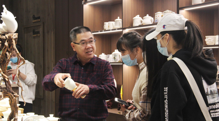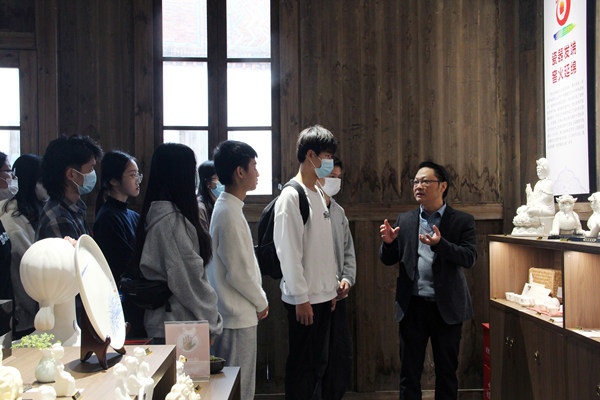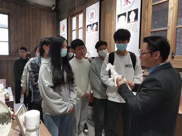 沙龍上,蔡國海老師以自身創(chuàng)作的瓷馬為例,淺談了德化瓷塑工藝的特色以及創(chuàng)作要領(lǐng),并帶領(lǐng)現(xiàn)場的學(xué)生游覽展館,為學(xué)生們科普陶瓷知識,傳播德化精湛的瓷塑工藝與潔白溫潤的白瓷文化,以此豐富學(xué)生們對陶瓷文化的認(rèn)知。