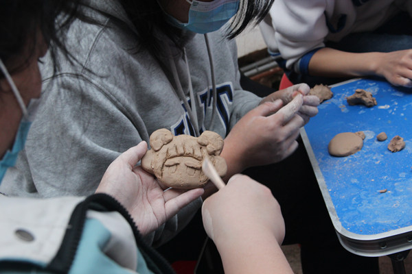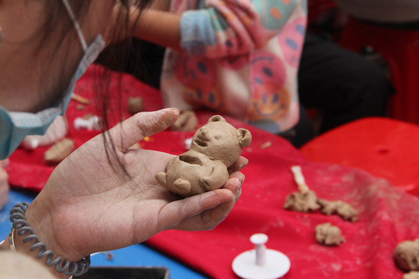 蔡國海老師以創(chuàng)作駿馬系列而聞名,所塑駿馬惟妙惟肖、精美絕倫。因此,在DIY創(chuàng)作體驗活動上,蔡國海老師現(xiàn)場雕飾了一件瓷馬作品,引得眾人圍觀稱嘆。學(xué)生們不僅感受到老師精湛的雕塑工藝,也激發(fā)了他們的創(chuàng)作熱情。他們用泥巴天馬行空地創(chuàng)作了各式各樣的泥塑作品,體驗了一把泥巴的魅力和創(chuàng)作的樂趣。
