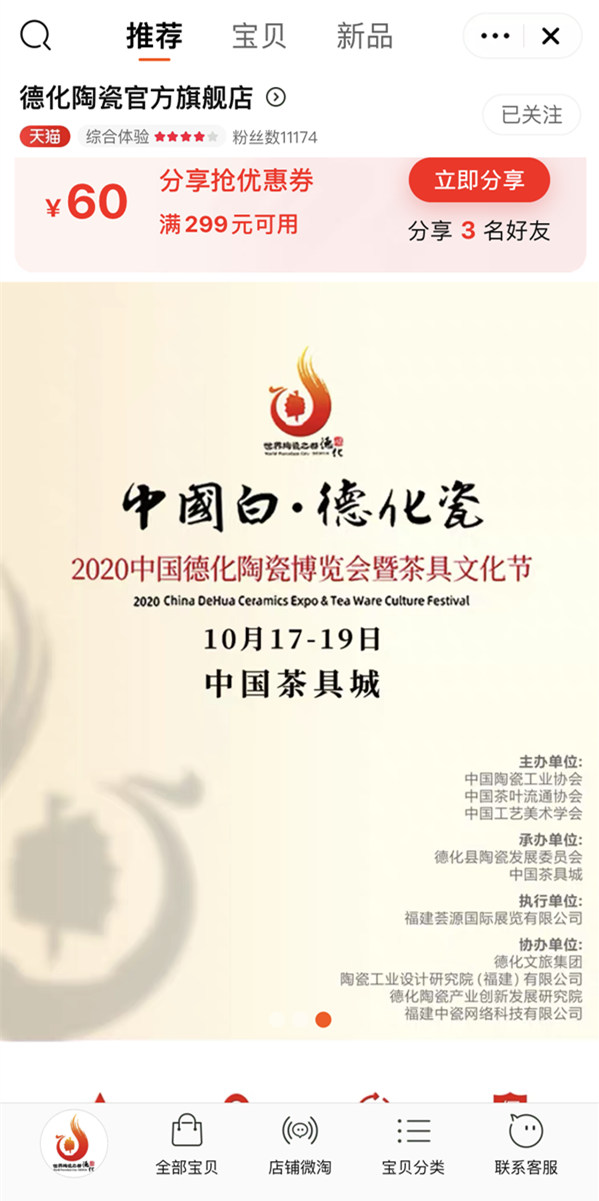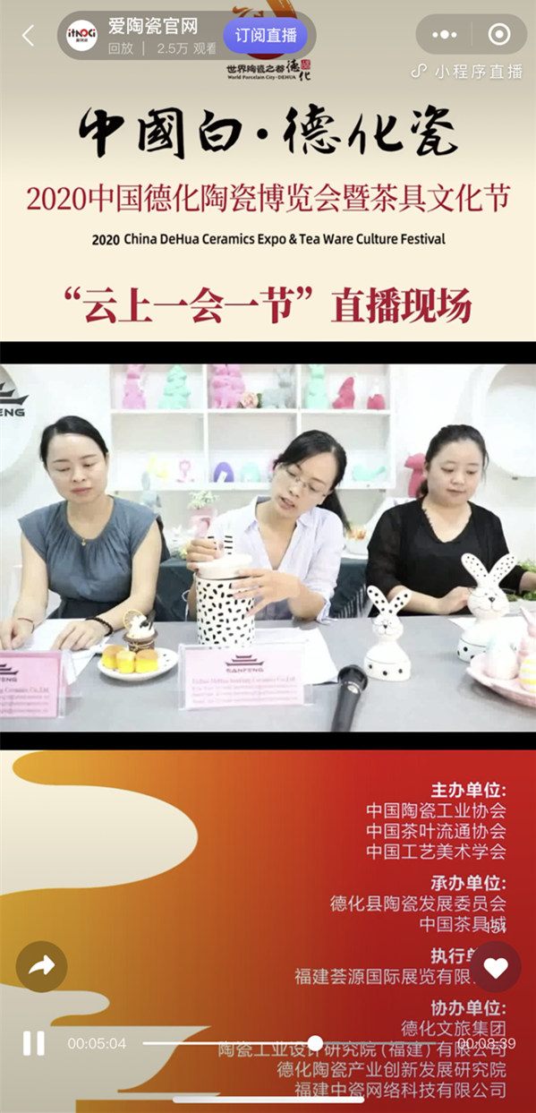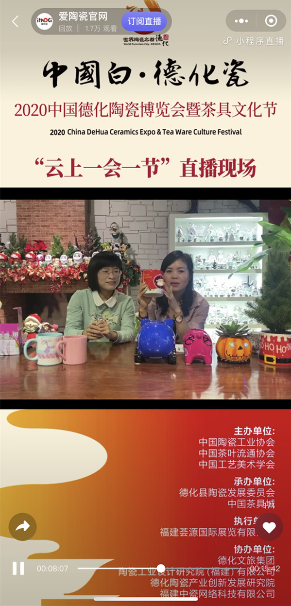 實現(xiàn)全域推廣,通過與淘寶天貓、玩物得志、微拍堂、東家等電商平臺聯(lián)動,在顯要位置進行推廣引流,鎖定精準(zhǔn)直播人群,進行云采購,全面推介德化本土好企業(yè)好產(chǎn)品,打響“世界陶瓷之都、中國瓷都”品牌。
