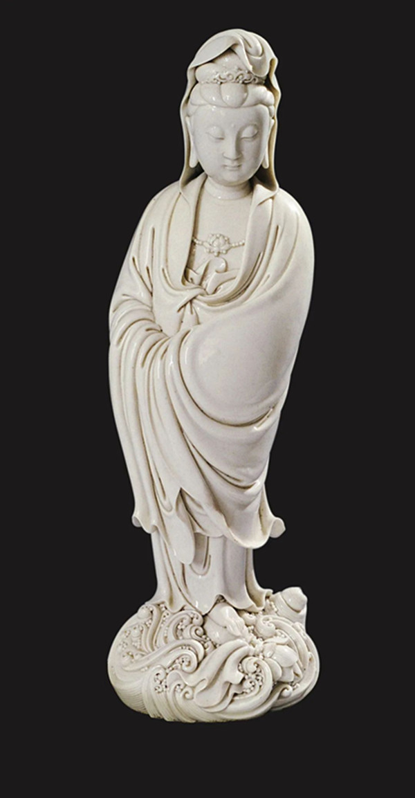 德化瓷質(zhì)地優(yōu)異,它的佛像大都追求單純的雕塑美和原材料的質(zhì)地美,摒棄彩飾。其中尤以明代何朝宗所作的瓷觀音最為著名。