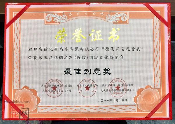 “德化百態(tài)觀音”榮獲絲綢之路(敦煌)國(guó)際文化博覽會(huì)最佳創(chuàng)意獎(jiǎng)