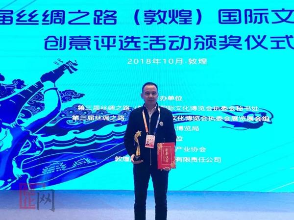 10月15日,由第三屆絲綢之路(敦煌)國(guó)際文化博覽會(huì)執(zhí)委會(huì)主辦,敦煌國(guó)際文化發(fā)展有限責(zé)任公司與甘肅文化創(chuàng)意產(chǎn)業(yè)協(xié)會(huì)聯(lián)合開(kāi)展的第三屆絲綢之路(敦煌)國(guó)際文化博覽會(huì)創(chuàng)意評(píng)選活動(dòng)在甘肅省敦煌國(guó)際會(huì)展中心舉行,“百態(tài)觀音”榮獲第三屆絲綢之路(敦煌)國(guó)際文化博覽會(huì)最佳創(chuàng)意獎(jiǎng)。