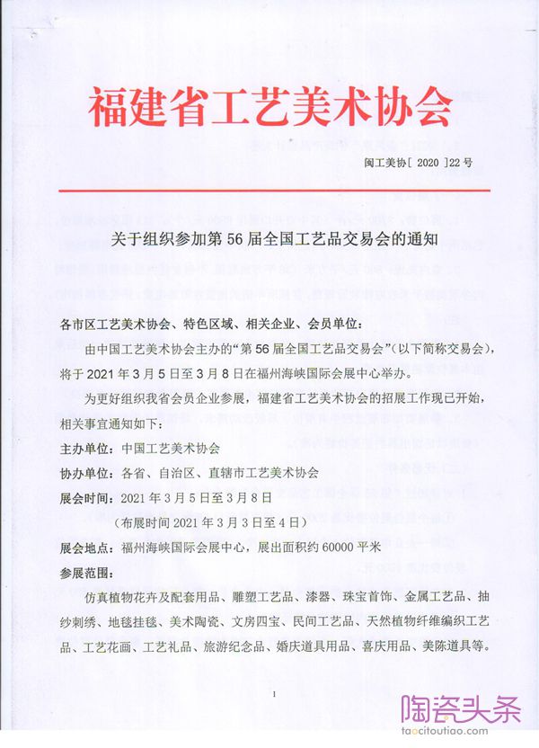 關(guān)于組織參加第56屆全國(guó)工藝品交易會(huì)的通知