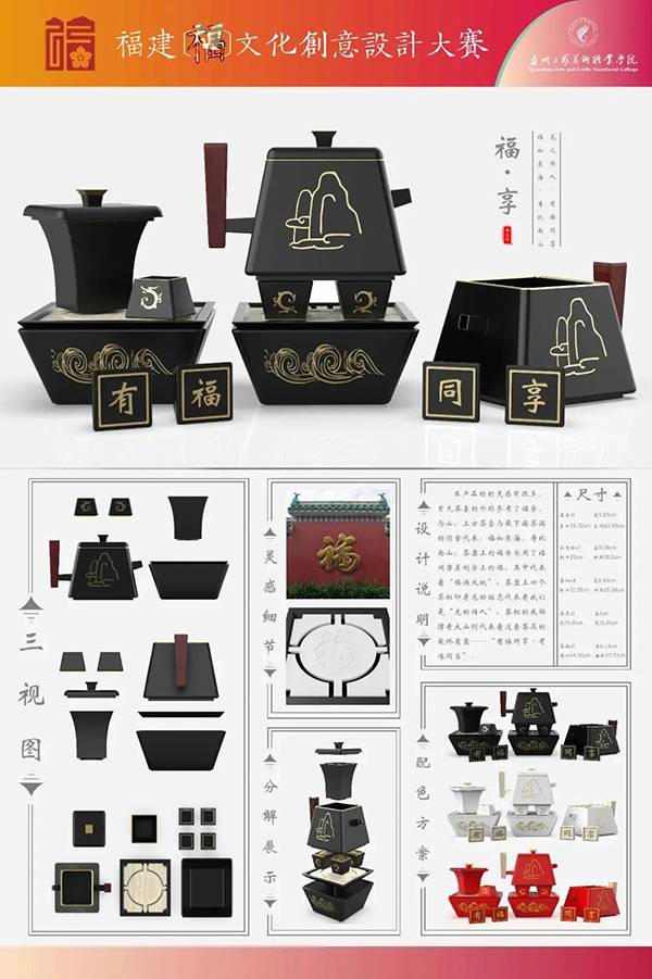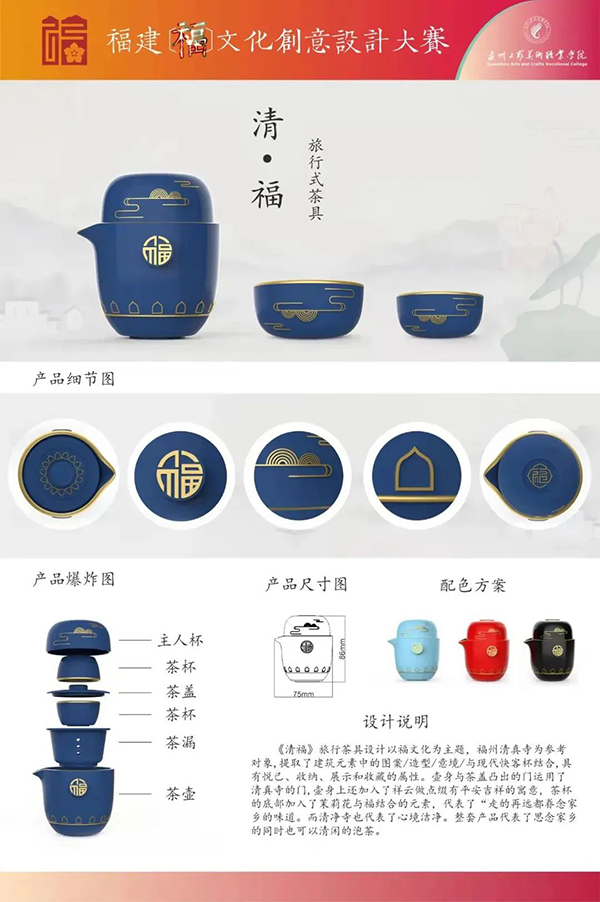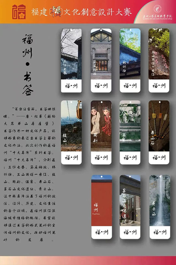 經線上評審,此次大賽評選產生入圍終評作品共361件,其中“福潮”類153件(泉州工藝美術職業(yè)學院入圍7件)、“福藝”類155件(泉州工藝美術職業(yè)學院入圍17件)、“福景”類53件(泉州工藝美術職業(yè)學院入圍3件)。