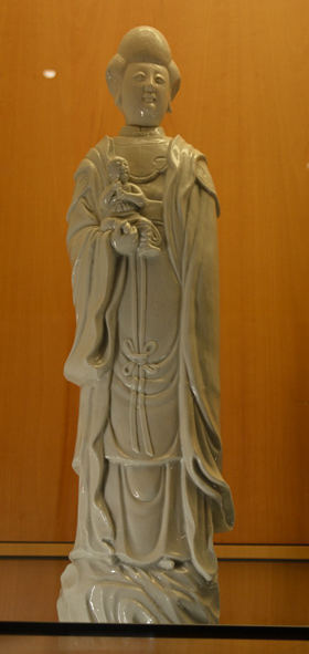 昂美術(shù)館陶瓷展廳展出的高達(dá)70公分的康熙德化外銷(xiāo)瓷——圣母瑪利亞,是基督教題材德化瓷的代表作品。