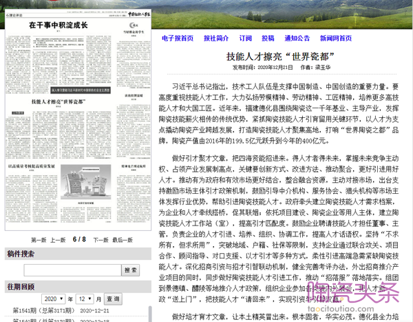點(diǎn)贊!《中國(guó)組織人事報(bào)》刊發(fā)梁玉華同志署名文章:技能人才擦亮“世界瓷都”
