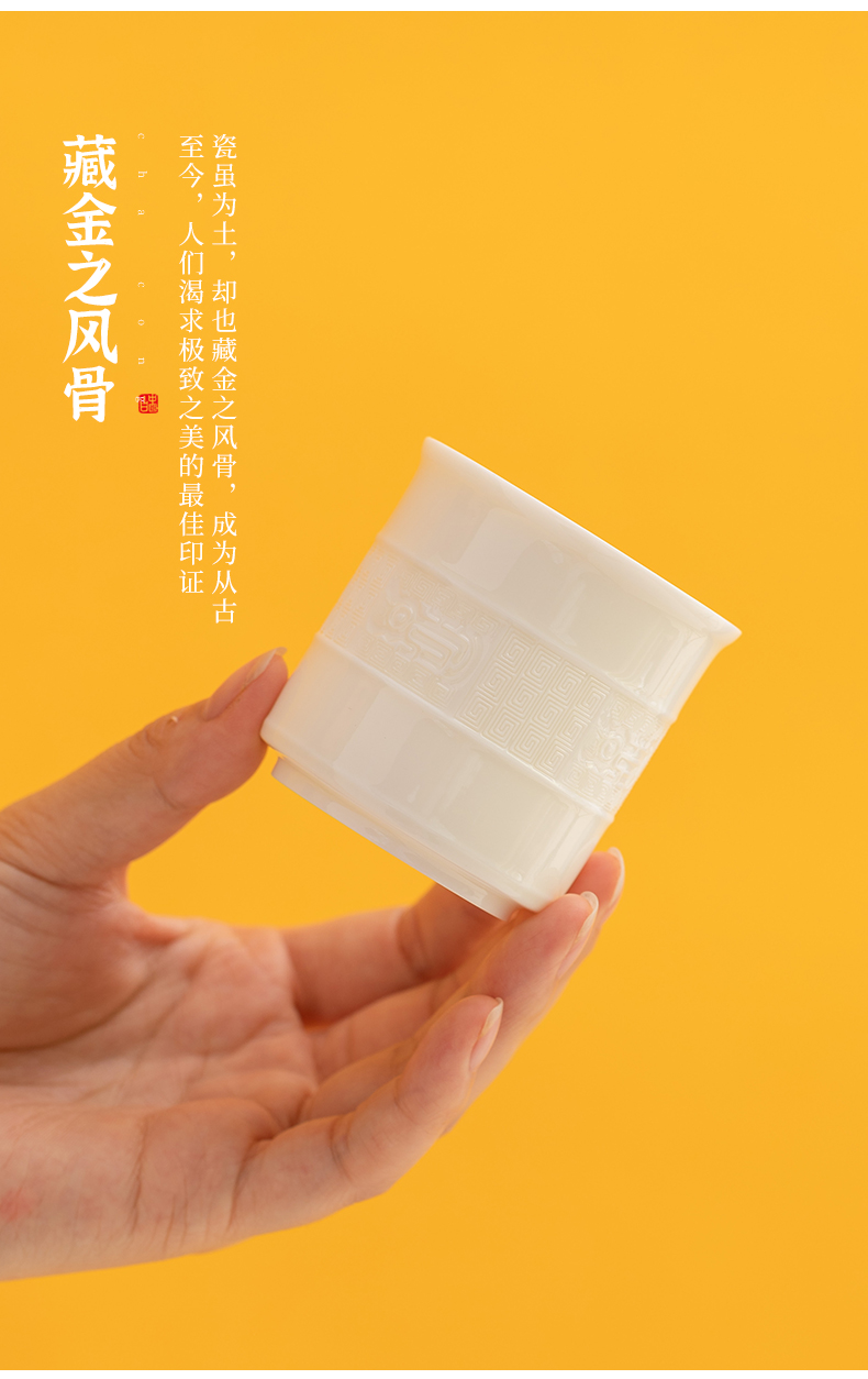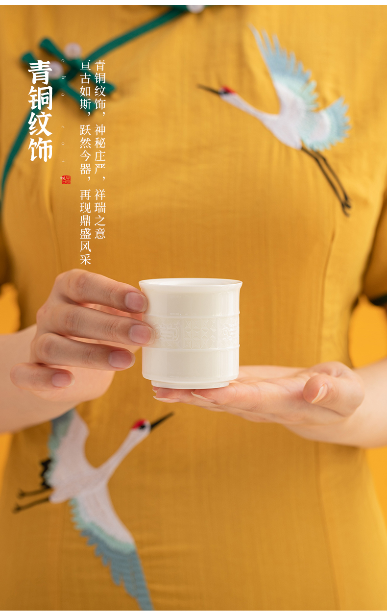 【茶琮】杯身借明,白釉竹節(jié),三足爐之青銅紋飾,龍紋無上尊貴,回紋象征財富。
