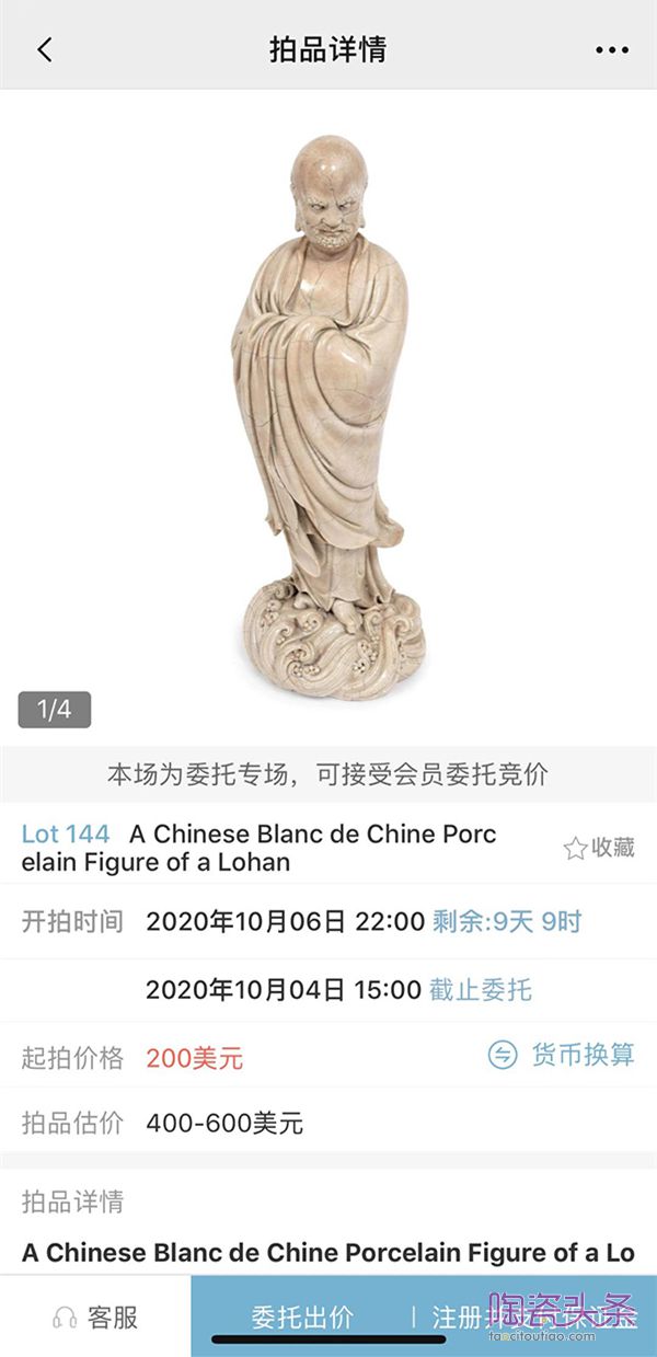 最新拍賣資訊丨德化 “何朝宗印”款 達(dá)摩立像 以人民幣約196.9萬(wàn)元落槌