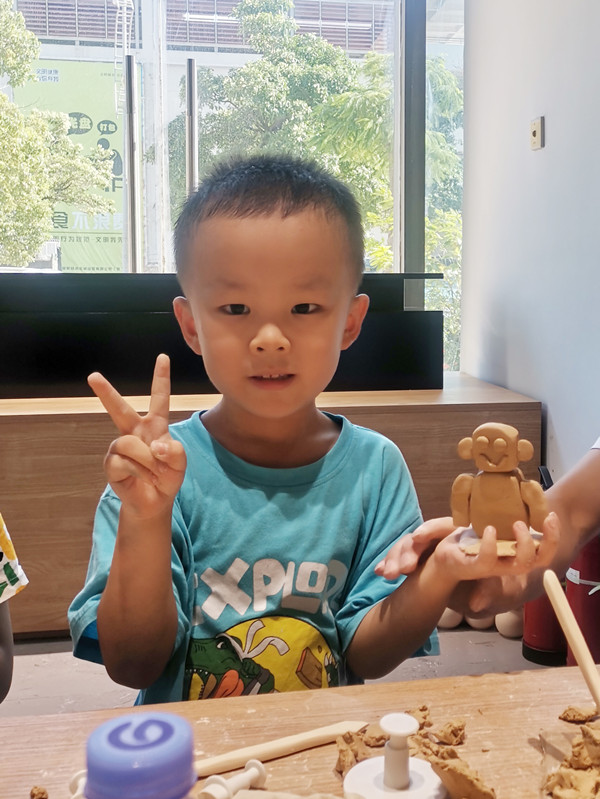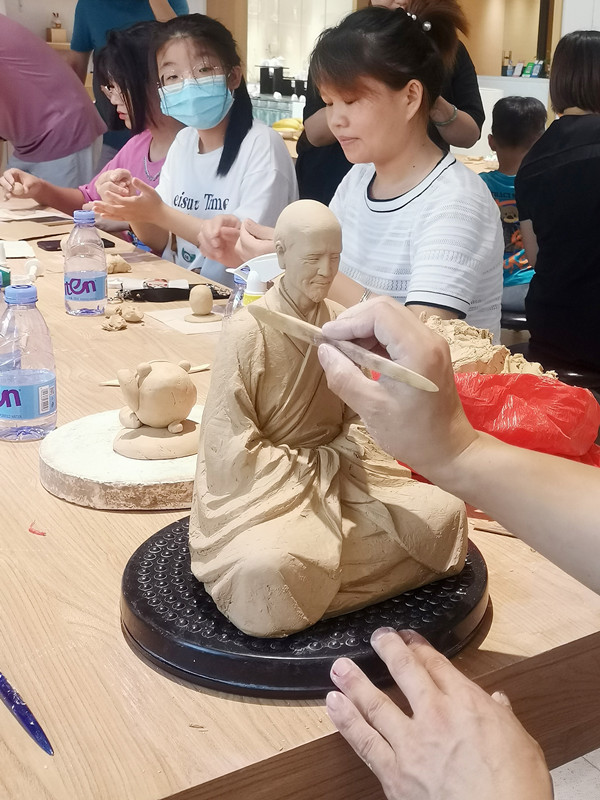 活動(dòng)上,張明貴老師帶來(lái)了一件弘一法師泥稿,現(xiàn)場(chǎng)展示泥塑創(chuàng)作的過程,并引導(dǎo)現(xiàn)場(chǎng)的家長(zhǎng)和小朋友一起動(dòng)手體驗(yàn)?zāi)嗤羷?chuàng)作的樂趣。小朋友們?cè)诩议L(zhǎng)的陪同下,以瓷泥為材質(zhì),根據(jù)自身的思路和審美,創(chuàng)作出造型百態(tài)的泥塑作品,歡樂無(wú)限,充分調(diào)動(dòng)起了小朋友的積極性。