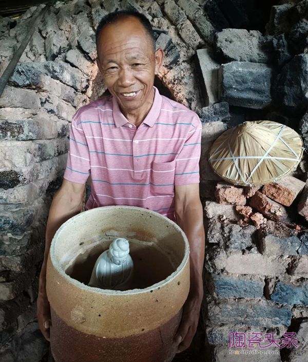 國家級非遺傳承人、中國工藝美術(shù)大師陳明良,全國技術(shù)能手李錦峰手持火把,點燃龍窯窯頭。