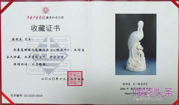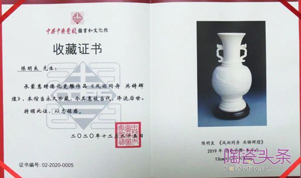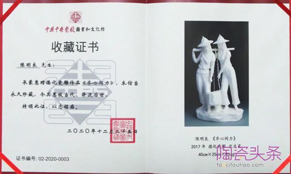 陳明良德化陶瓷作品展在中共中央黨校開展,三件代表作品被永久收藏