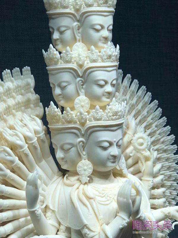 成功燒制藏傳佛像可以說是林建勝從藝生涯厚積薄發(fā)的體現(xiàn),這一成就離不開其40年來技藝的錘煉和商業(yè)的積累,以及對瓷塑創(chuàng)新的孜孜追求。在林建勝看來,攀登藝術(shù)的山峰沒有捷徑可走,需要恒心和毅力。藏傳佛像常遇到反復(fù)重復(fù)的造型,林建勝創(chuàng)作的半身高的“千眼千手觀音”就歷時40多天,僅瓔珞、項鏈、底座上細(xì)密串聯(lián)的珠子就有成百上千個,每個僅一二毫米,沒有機(jī)械制作、測量,全靠用手搓出相同大小,不僅考驗(yàn)著作者的手感,而且考驗(yàn)其耐心程度。