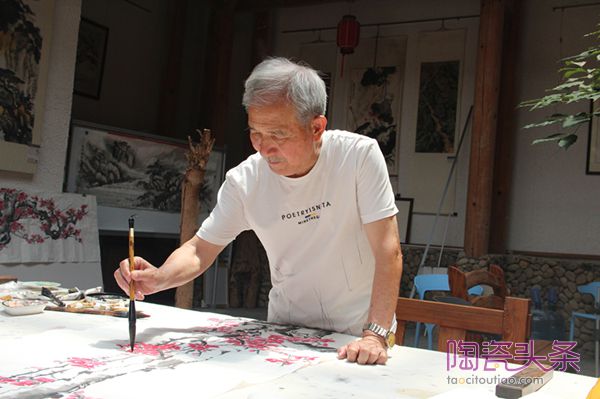 他的大半生都在與瓷、與墨打交道。既專研紙上的中國(guó)畫,也探究瓷上的釉畫,介質(zhì)不同,手法表現(xiàn)也不同。紙上繪畫隨意自在,大刀闊斧,墨筆一揮便能構(gòu)圖作畫;瓷上作畫則嚴(yán)謹(jǐn)細(xì)致,環(huán)環(huán)相扣,既考究作畫構(gòu)圖,也考驗(yàn)燒成效果。