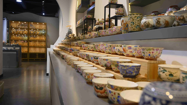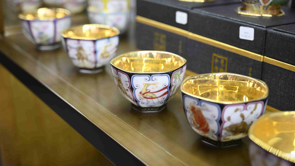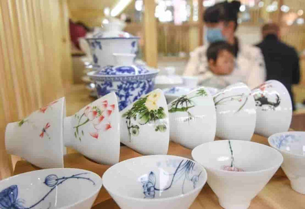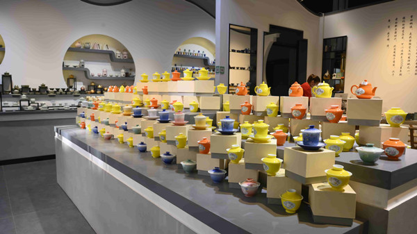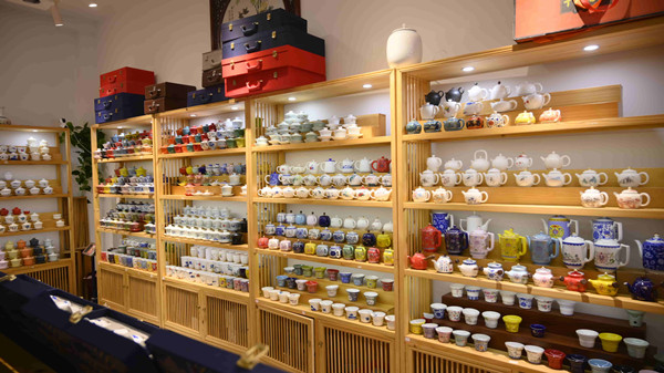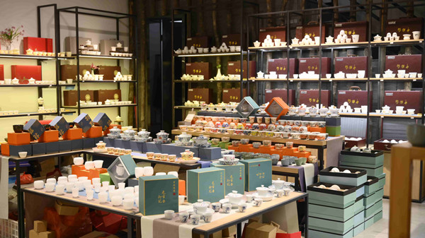 走進(jìn)中國(guó)茶具城,街道兩側(cè)排布著大大小小的茶具及配套產(chǎn)品企業(yè)展廳。走入一家,便可看到展架上琳瑯滿目的特色茶具,有配以四季花卉圖案的季節(jié)主題茶盞,有溫潤(rùn)透亮、做工精美的白瓷茶杯,還有適用于贈(zèng)人、自用不同場(chǎng)景的套裝茶具。