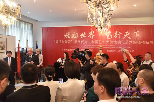 2021年5月10日,“媽祖世界?瓷行天下——‘媽祖與陶瓷’斯洛伐克共和國(guó)駐華大使館德化藝術(shù)陶瓷精品展”在北京斯洛伐克共和國(guó)駐華大使館開幕。來(lái)自澳地利、阿塞拜疆、湯加、立陶宛等16個(gè)國(guó)家駐華大使,20多個(gè)國(guó)家駐華文化參贊等參加開幕式。