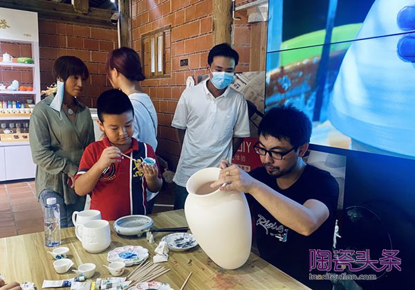 在創(chuàng)作體驗(yàn)上,莊曉陽(yáng)老師現(xiàn)場(chǎng)在一件素坯瓷瓶上繪就了一幅山水畫(huà),寥寥數(shù)筆就已初顯輪廓,展現(xiàn)出了精湛的畫(huà)工技藝。他還不時(shí)與現(xiàn)場(chǎng)參與的小朋友互動(dòng),指導(dǎo)繪畫(huà)技法。小朋友們天馬行空,盡情發(fā)揮想象力,在陶瓷杯上作畫(huà),感受陶瓷手繪創(chuàng)作的樂(lè)趣。