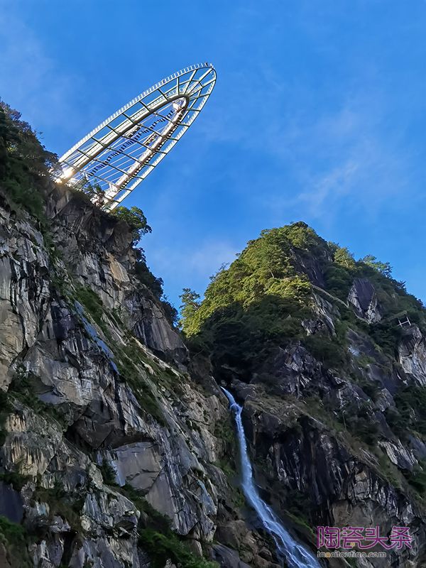 天空之心(玻璃觀景平臺)面積520㎡ ,懸空高度314m,位于岱仙瀑布的斜上方,單級落差184m 總落差314m。是全國面積最大的玻璃觀景平臺,在上面可以俯瞰瀑布全景,是觀瀑的絕佳位置,玻璃觀景臺外挑懸空長度約52米,代表520我愛你的寓意,讓你勇敢為愛表白。