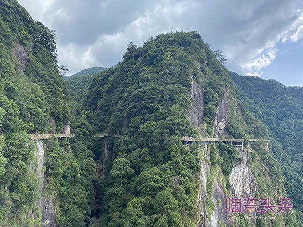 在這里你可以乘坐7168米的索道,穿梭于峰巒起伏的山林之間;你可以站在懸空的玻璃上俯瞰瀑布全景,感受一覽眾山小的絕美景觀;你可以為愛行動,走上3000米的心形棧道;你可以登上云梯,與云海比肩拍出人間仙境……