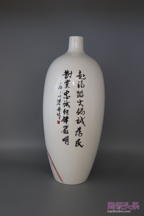 關(guān)于瓷繪作品的創(chuàng)作,鄭碧丹有自己的一套表現(xiàn)方式。在創(chuàng)作載體上,鄭碧丹主要以德化白瓷為創(chuàng)作載體,應(yīng)用留白式繪畫(huà)技法,色彩搭配濃烈,注重體現(xiàn)德化白瓷所特有的潔白如雪、溫潤(rùn)如玉的特性?!坝冒状梢r托畫(huà)面的靚麗,用畫(huà)面襯托白瓷的潔凈,它們互為整體,又互相襯托,相得益彰?!编嵄痰そ榻B道。