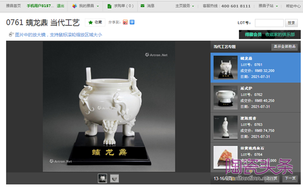 前段時間,由北京得逸拍賣有限公司舉辦的2021首屆文物藝術品拍賣會在北京圓滿落幕。據(jù)悉,拍賣會采取線上線下相結合的形式,同步在雅昌藝術網(wǎng)、藝典中國等國內各大網(wǎng)絡平臺舉行。